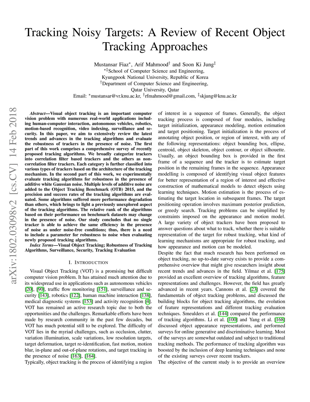 Tracking Noisy Targets: A Review of Recent Object Tracking Approaches