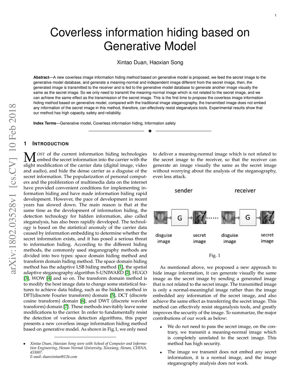 Coverless information hiding based on Generative Model