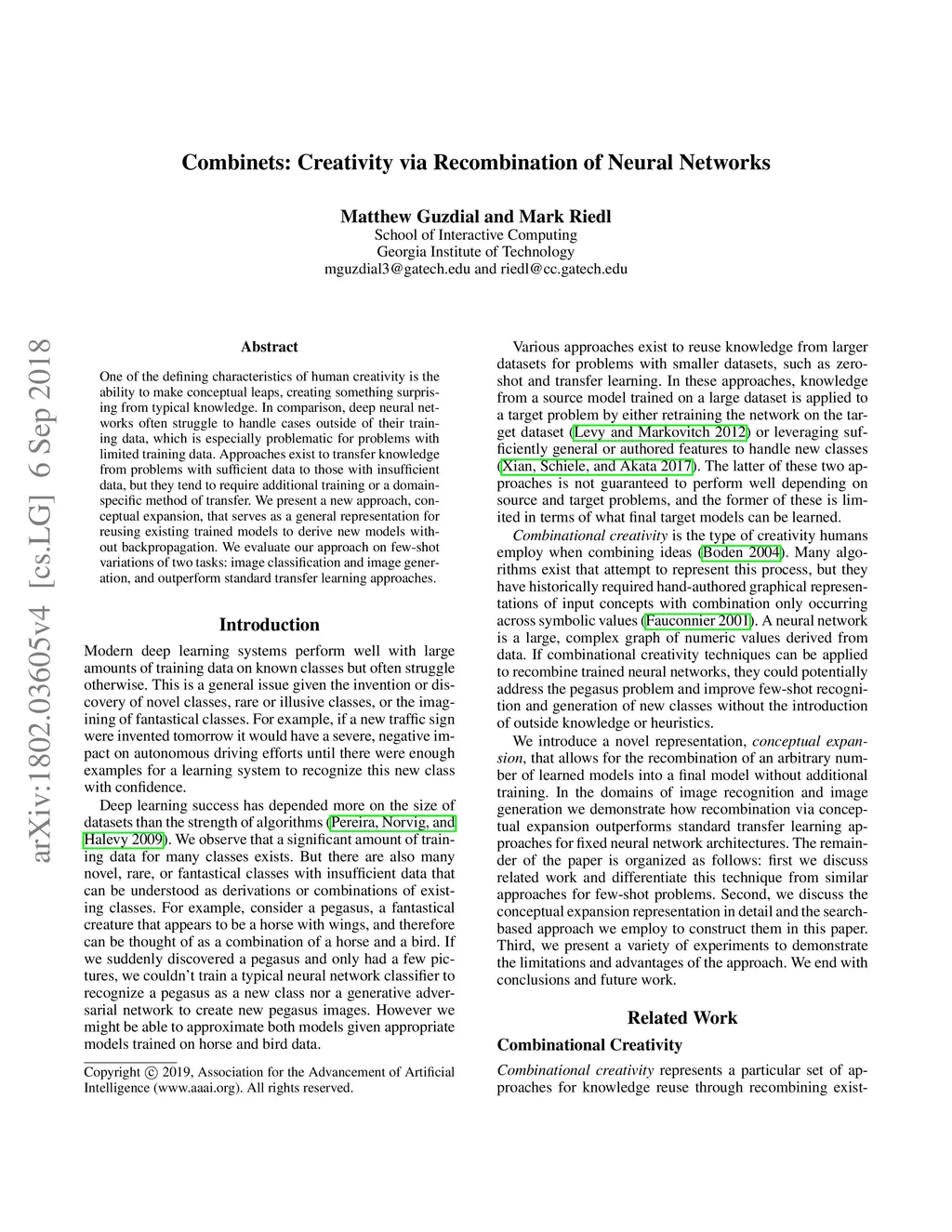 Combinets: Creativity via Recombination of Neural Networks