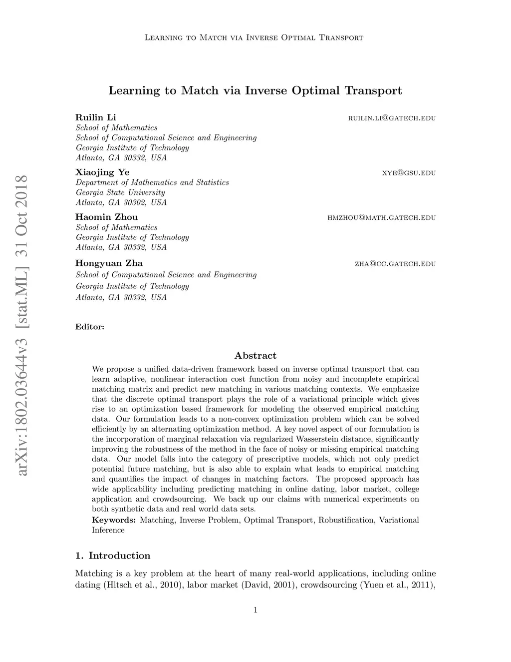 We propose a unified data-driven framework based on inverse optimal transport that can learn adaptive, nonlinear interaction cost function from noisy and incomplete empirical matching matrix and predict new matching in various matching contexts. We emphasize that the discrete optimal transport plays the role of a variational principle which gives rise to an optimization-based framework for modeling the observed empirical matching data. Our formulation leads to a non-convex optimization problem which can be solved efficiently by an alternating optimization method. A key novel aspect of our formulation is the incorporation of marginal relaxation via regularized Wasserstein distance, significantly improving the robustness of the method in the face of noisy or missing empirical matching data. Our model falls into the category of prescriptive models, which not only predict potential future matching, but is also able to explain what leads to empirical matching and quantifies the impact of changes in matching factors. The proposed approach has wide applicability including predicting matching in online dating, labor market, college application and crowdsourcing. We back up our claims with numerical experiments on both synthetic data and real world data sets.