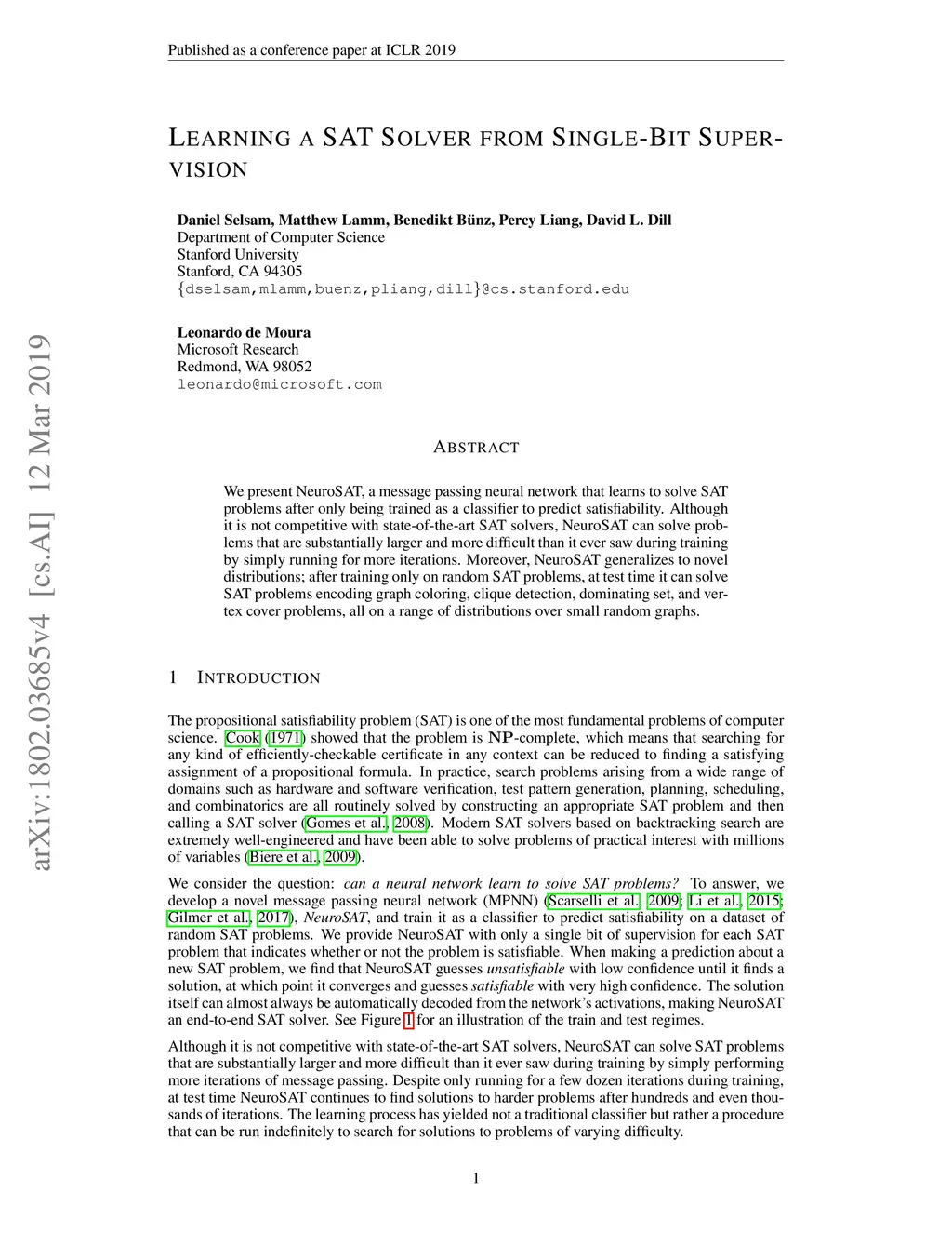Learning a SAT Solver from Single-Bit Supervision