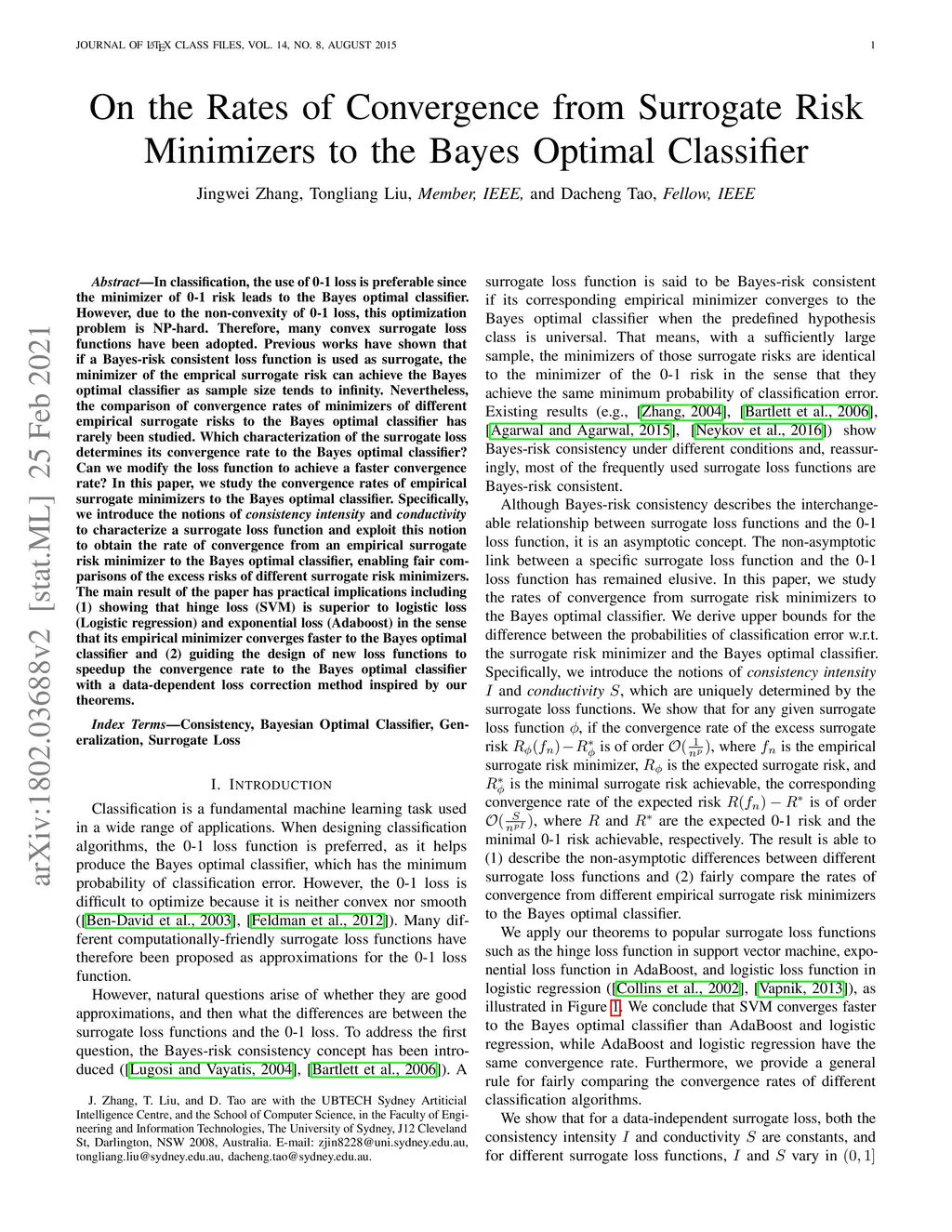 We study the rates of convergence from empirical surrogate risk minimizers to the Bayes optimal classifier. Specifically, we introduce the notion of \emph{consistency intensity} to characterize a surrogate loss function and exploit this notion to obtain the rate of convergence from an empirical surrogate risk minimizer to the Bayes optimal classifier, enabling fair comparisons of the excess risks of different surrogate risk minimizers. The main result of the paper has practical implications including (1) showing that hinge loss is superior to logistic and exponential loss in the sense that its empirical minimizer converges faster to the Bayes optimal classifier and (2) guiding to modify surrogate loss functions to accelerate the convergence to the Bayes optimal classifier.