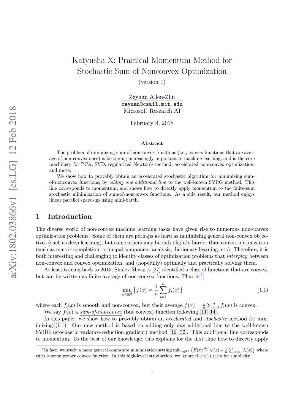 The problem of minimizing sum-of-nonconvex functions (i.e., convex functions that are average of non-convex ones) is becoming increasingly important in machine learning, and is the core machinery for PCA, SVD, regularized Newton's method, accelerated non-convex optimization, and more. We show how to provably obtain an accelerated stochastic algorithm for minimizing sum-of-nonconvex functions, by to the well-known SVRG method. This line corresponds to momentum, and shows how to directly apply momentum to the finite-sum stochastic minimization of sum-of-nonconvex functions. As a side result, our method enjoys linear parallel speed-up using mini-batch.