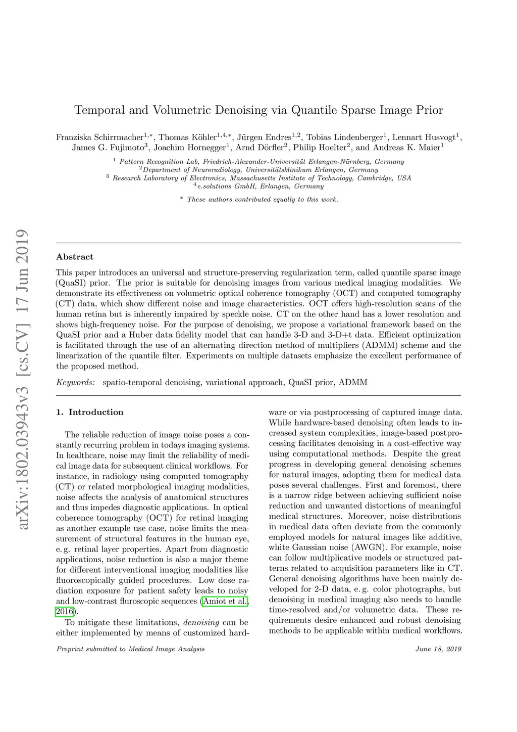 Temporal and Volumetric Denoising via Quantile Sparse Image (QuaSI)