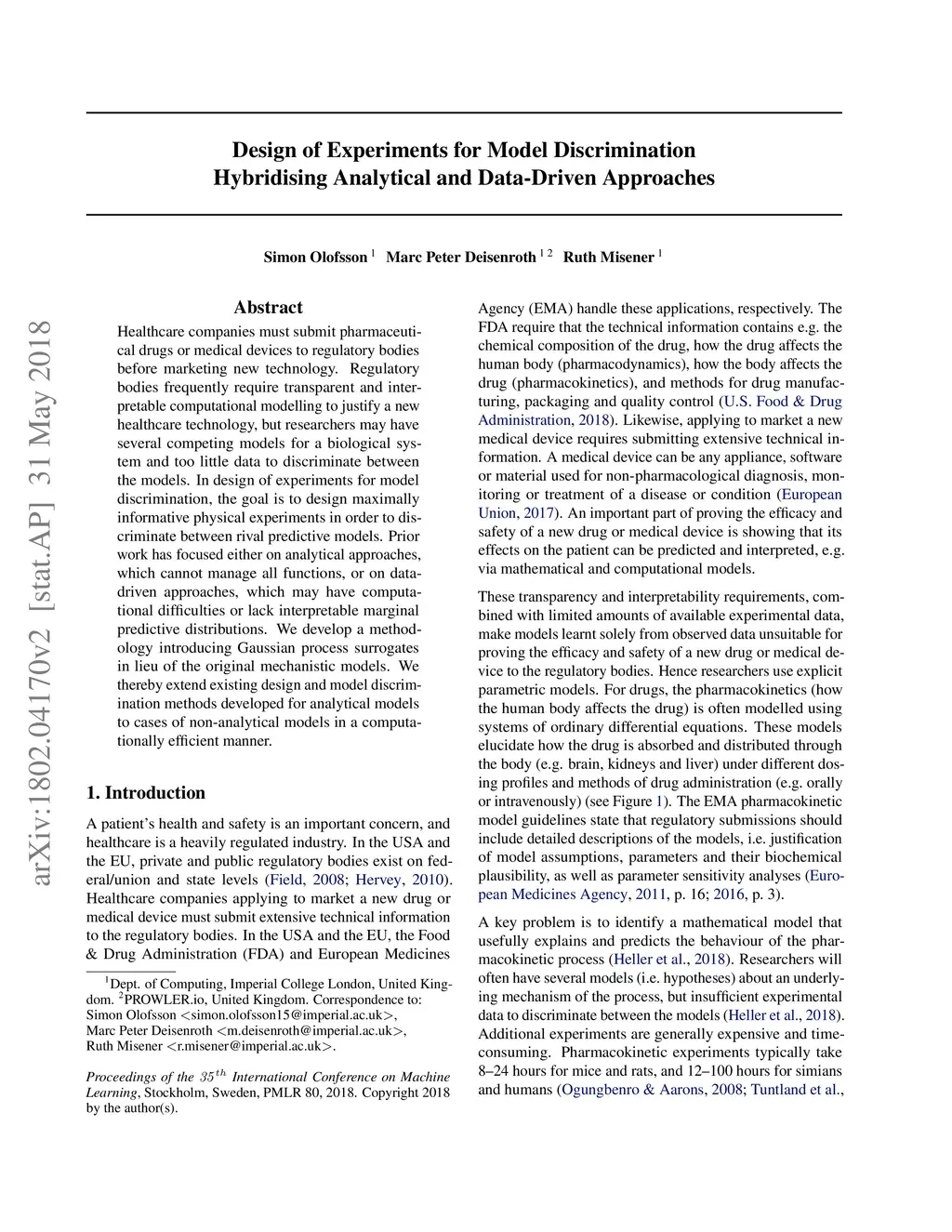 Design of Experiments for Model Discrimination Hybridising Analytical