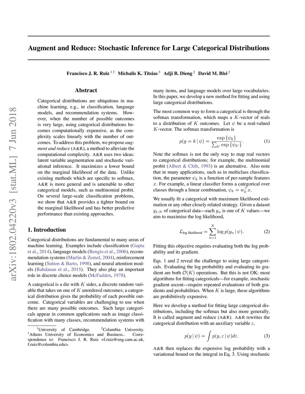 Augment and Reduce: Stochastic Inference for Large Categorical