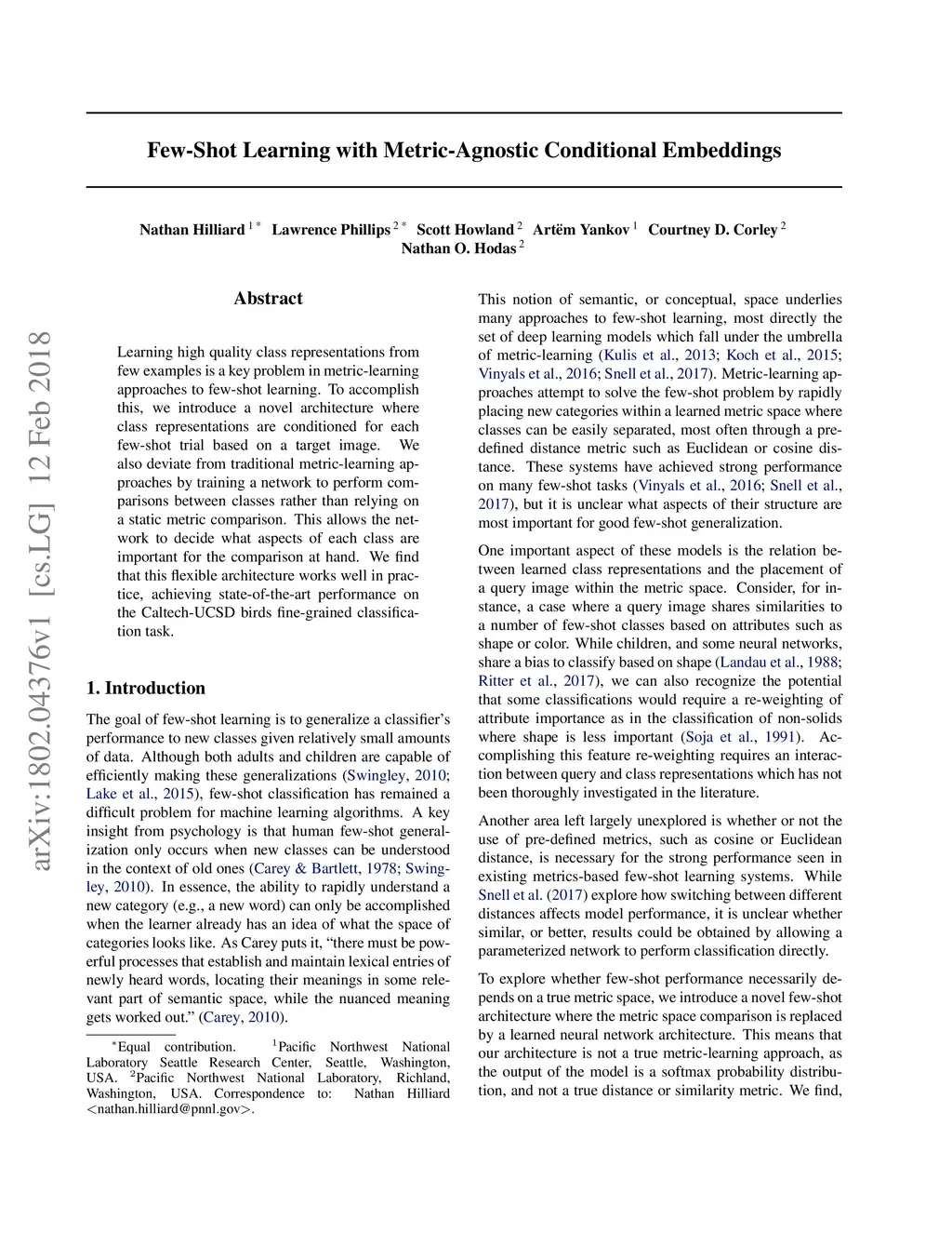Few-Shot Learning with Metric-Agnostic Conditional Embeddings