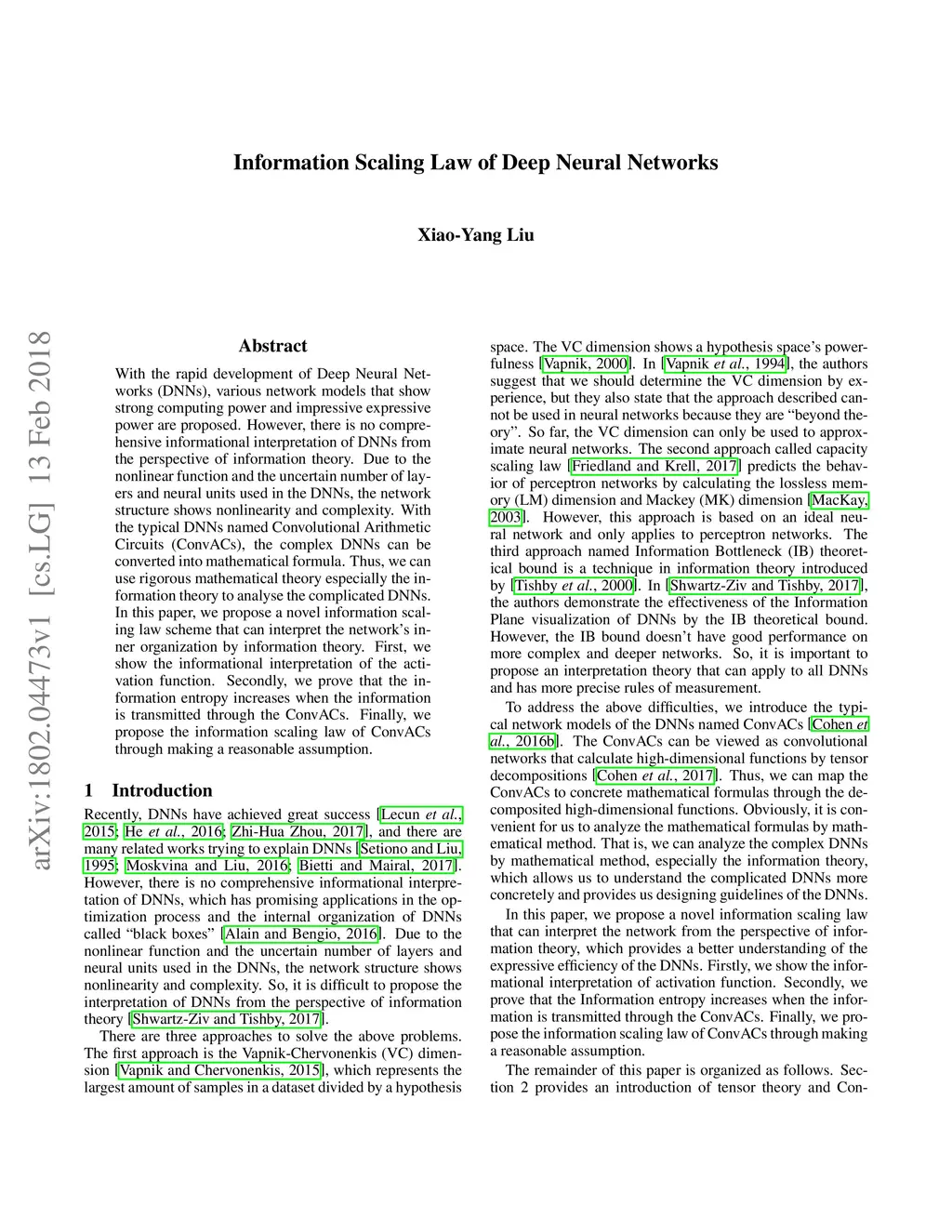 With the rapid development of Deep Neural Networks (DNNs), various network models that show strong computing power and impressive expressive power are proposed. However, there is no comprehensive informational interpretation of DNNs from the perspective of information theory. Due to the nonlinear function and the uncertain number of layers and neural units used in the DNNs, the network structure shows nonlinearity and complexity. With the typical DNNs named Convolutional Arithmetic Circuits (ConvACs), the complex DNNs can be converted into mathematical formula. Thus, we can use rigorous mathematical theory especially the information theory to analyse the complicated DNNs. In this paper, we propose a novel information scaling law scheme that can interpret the network's inner organization by information theory. First, we show the informational interpretation of the activation function. Secondly, we prove that the information entropy increases when the information is transmitted through the ConvACs. Finally, we propose the information scaling law of ConvACs through making a reasonable assumption.