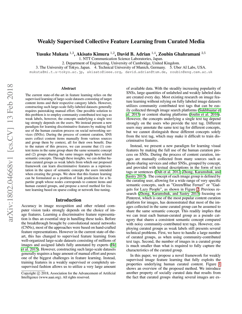 Weakly supervised collective feature learning from curated media