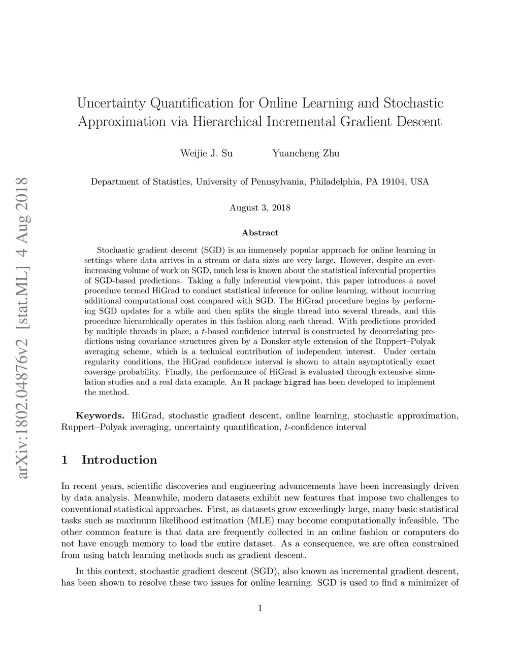 HiGrad: Uncertainty Quantification for Online Learning and Stochastic Approximation