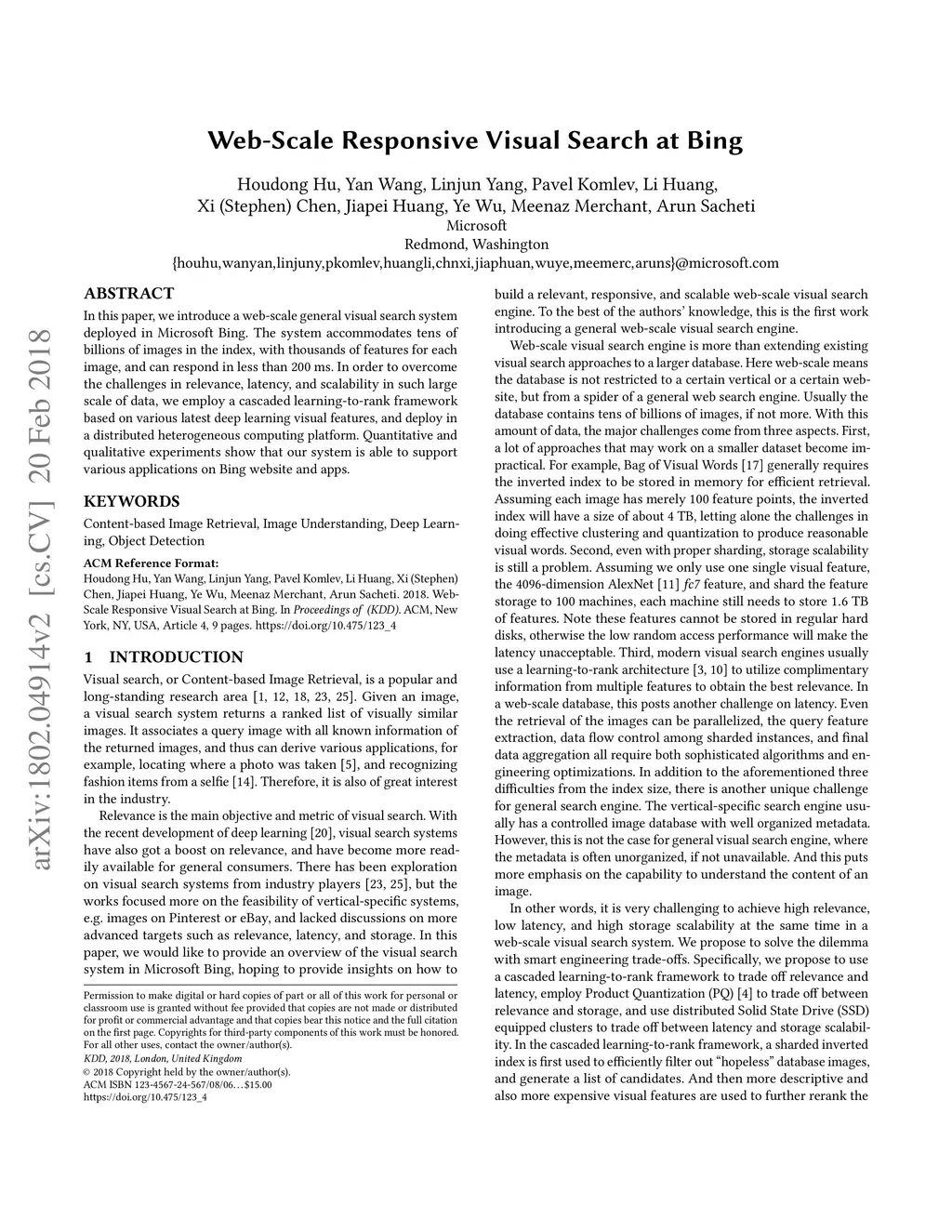 Web-Scale Responsive Visual Search at Bing