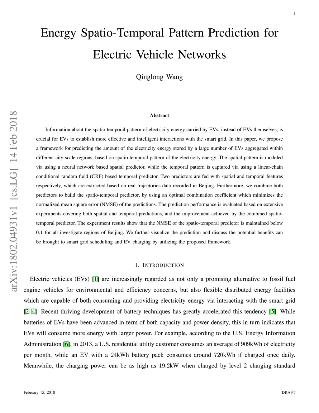 Energy Spatio-Temporal Pattern Prediction for Electric Vehicle Networks