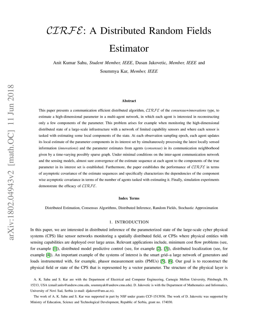 This paper presents a communication efficient distributed algorithm, of the \emph{consensus}+\emph{innovations} type, to estimate a high-dimensional parameter in a multi-agent network, in which each agent is interested in reconstructing only a few components of the parameter. This problem arises for example when monitoring the high-dimensional distributed state of a large-scale infrastructure with a network of limited capability sensors and where each sensor is only tasked with estimating some local components of the state. At each observation sampling epoch, each agent updates its local estimate of the parameter components in its interest set by simultaneously processing the latest locally sensed information~(\emph{innovations}) and the parameter estimates from other agents~(\emph{consensus}) in the local time-varying neighborhood of agents over a (possibly sparse) communication graph. Under minimal conditions on the inter-agent information exchange network and the sensing models, almost sure convergence of the estimate sequence at each agent to the components of the true parameter in its interest set is established. Furthermore, the paper characterizes the performance of in terms of asymptotic covariance of the estimate sequences and specifically highlights the dependencies of the component wise asymptotic covariance in terms of the number of agents tasked with estimating it. Finally, simulation experiments demonstrate the efficacy of .