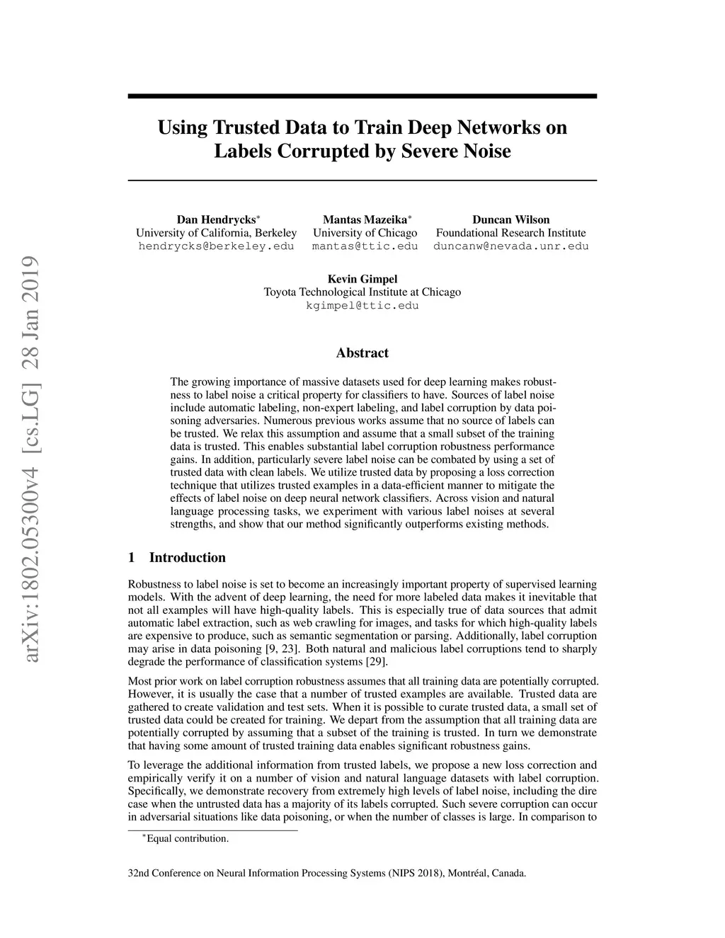 Using Trusted Data to Train Deep Networks on Labels Corrupted by Severe