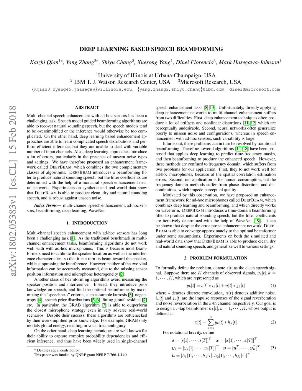 Deep Learning Based Speech Beamforming
