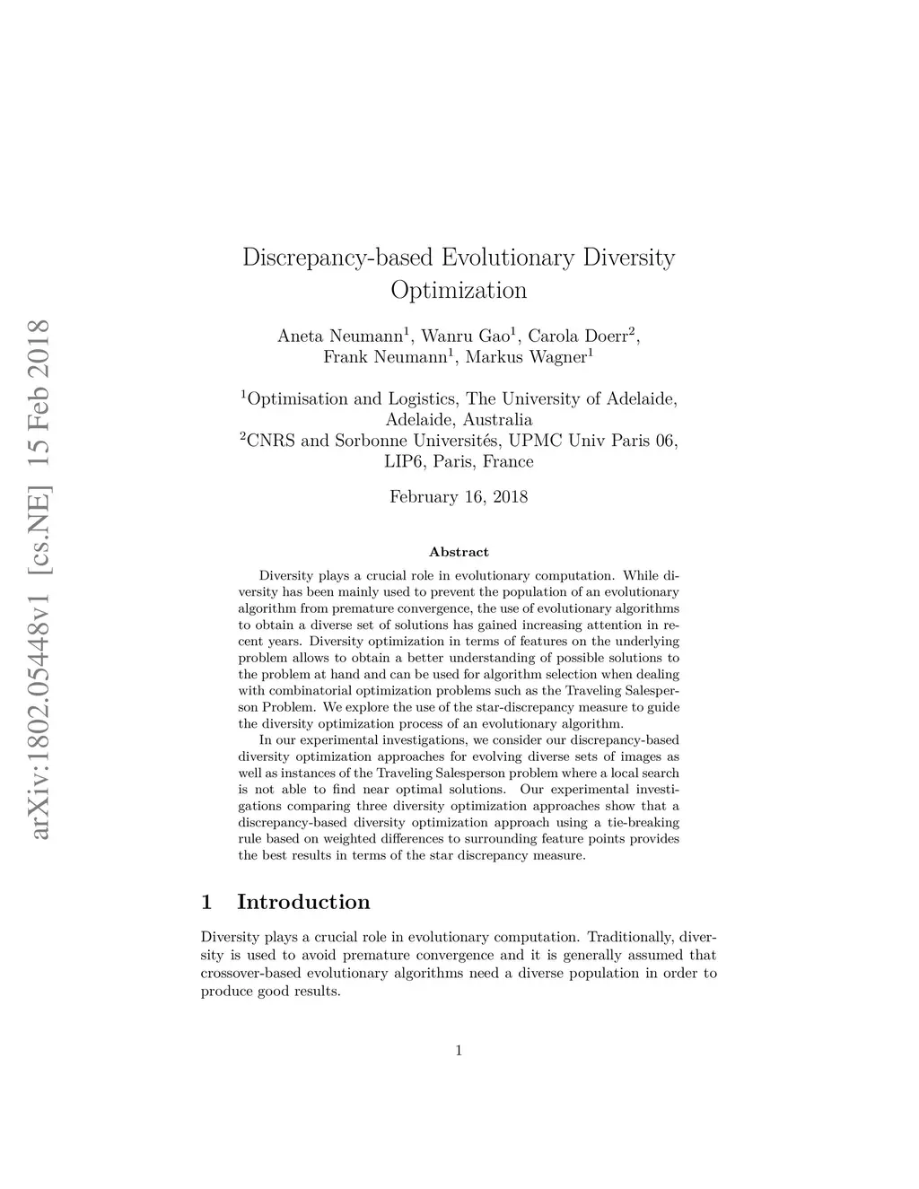 Diversity plays a crucial role in evolutionary computation. While diversity has been mainly used to prevent the population of an evolutionary algorithm from premature convergence, the use of evolutionary algorithms to obtain a diverse set of solutions has gained increasing attention in recent years. Diversity optimization in terms of features on the underlying problem allows to obtain a better understanding of possible solutions to the problem at hand and can be used for algorithm selection when dealing with combinatorial optimization problems such as the Traveling Salesperson Problem. We explore the use of the star-discrepancy measure to guide the diversity optimization process of an evolutionary algorithm. In our experimental investigations, we consider our discrepancy-based diversity optimization approaches for evolving diverse sets of images as well as instances of the Traveling Salesperson problem where a local search is not able to find near optimal solutions. Our experimental investigations comparing three diversity optimization approaches show that a discrepancy-based diversity optimization approach using a tie-breaking rule based on weighted differences to surrounding feature points provides the best results in terms of the star discrepancy measure.