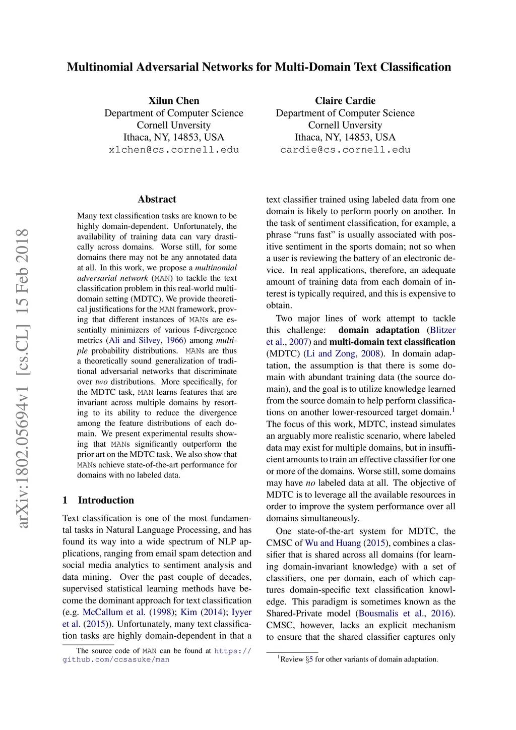 Multinomial Adversarial Networks for Multi-Domain Text Classification