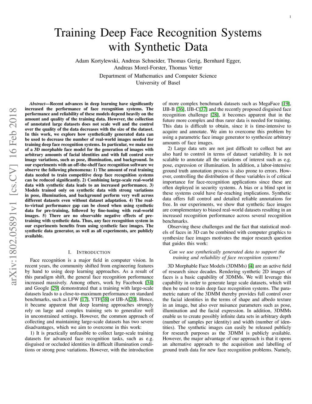 Recent advances in deep learning have significantly increased the performance of face recognition systems. The performance and reliability of these models depend heavily on the amount and quality of the training data. However, the collection of annotated large datasets does not scale well and the control over the quality of the data decreases with the size of the dataset. In this work, we explore how synthetically generated data can be used to decrease the number of real-world images needed for training deep face recognition systems. In particular, we make use of a 3D morphable face model for the generation of images with arbitrary amounts of facial identities and with full control over image variations, such as pose, illumination, and background. In our experiments with an off-the-shelf face recognition software we observe the following phenomena: 1) The amount of real training data needed to train competitive deep face recognition systems can be reduced significantly. 2) Combining large-scale real-world data with synthetic data leads to an increased performance. 3) Models trained only on synthetic data with strong variations in pose, illumination, and background perform very well across different datasets even without dataset adaptation. 4) The real-to-virtual performance gap can be closed when using synthetic data for pre-training, followed by fine-tuning with real-world images. 5) There are no observable negative effects of pre-training with synthetic data. Thus, any face recognition system in our experiments benefits from using synthetic face images. The synthetic data generator, as well as all experiments, are publicly available.