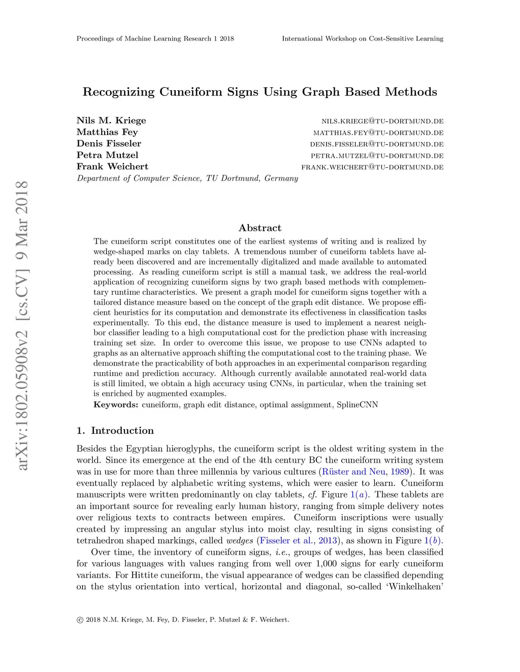 Recognizing Cuneiform Signs Using Graph Based Methods