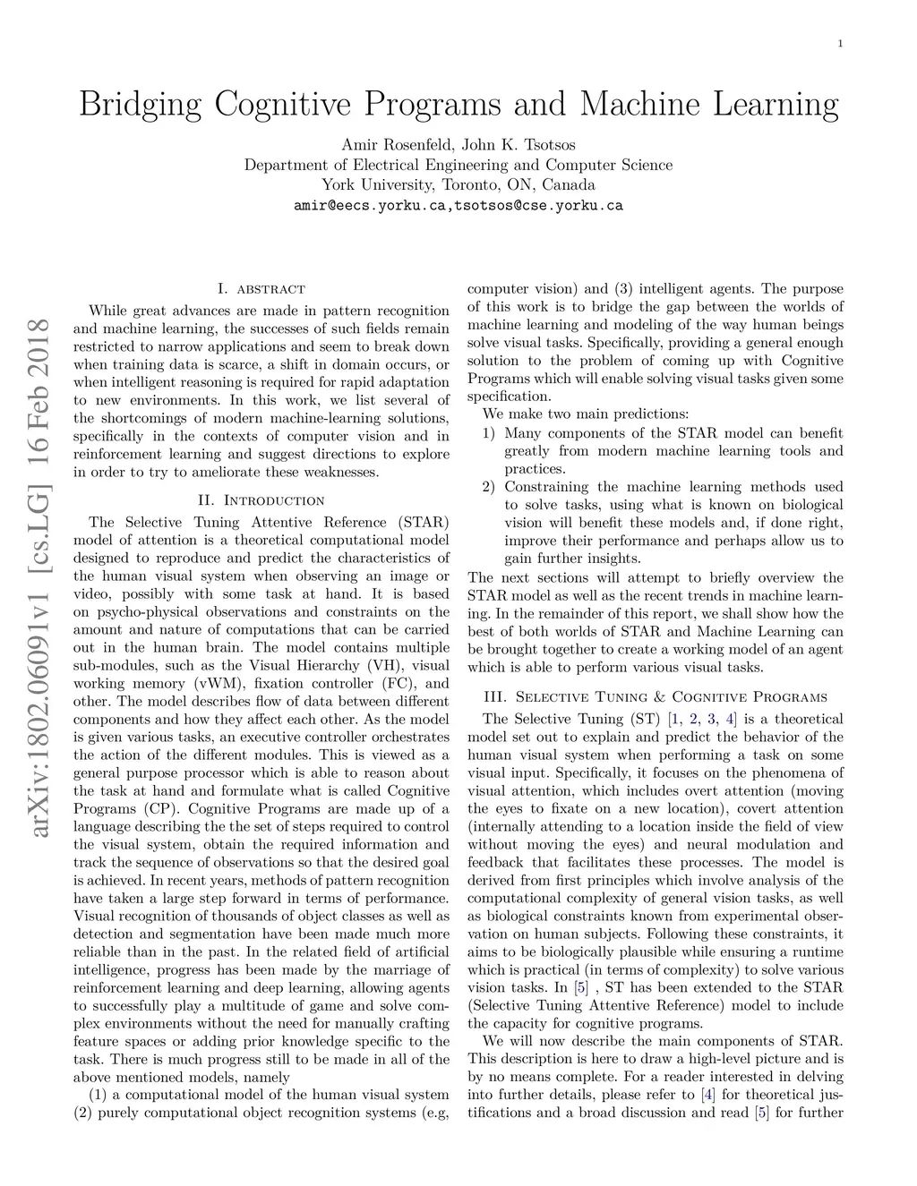 While great advances are made in pattern recognition and machine learning, the successes of such fields remain restricted to narrow applications and seem to break down when training data is scarce, a shift in domain occurs, or when intelligent reasoning is required for rapid adaptation to new environments. In this work, we list several of the shortcomings of modern machine-learning solutions, specifically in the contexts of computer vision and in reinforcement learning and suggest directions to explore in order to try to ameliorate these weaknesses.