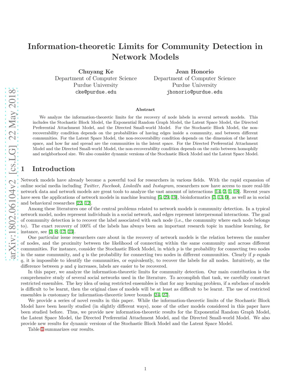 We analyze the information-theoretic limits for the recovery of node labels in several network models. This includes the Stochastic Block Model, the Exponential Random Graph Model, the Latent Space Model, the Directed Preferential Attachment Model, and the Directed Small-world Model. For the Stochastic Block Model, the non-recoverability condition depends on the probabilities of having edges inside a community, and between different communities. For the Latent Space Model, the non-recoverability condition depends on the dimension of the latent space, and how far and spread are the communities in the latent space. For the Directed Preferential Attachment Model and the Directed Small-world Model, the non-recoverability condition depends on the ratio between homophily and neighborhood size. We also consider dynamic versions of the Stochastic Block Model and the Latent Space Model.