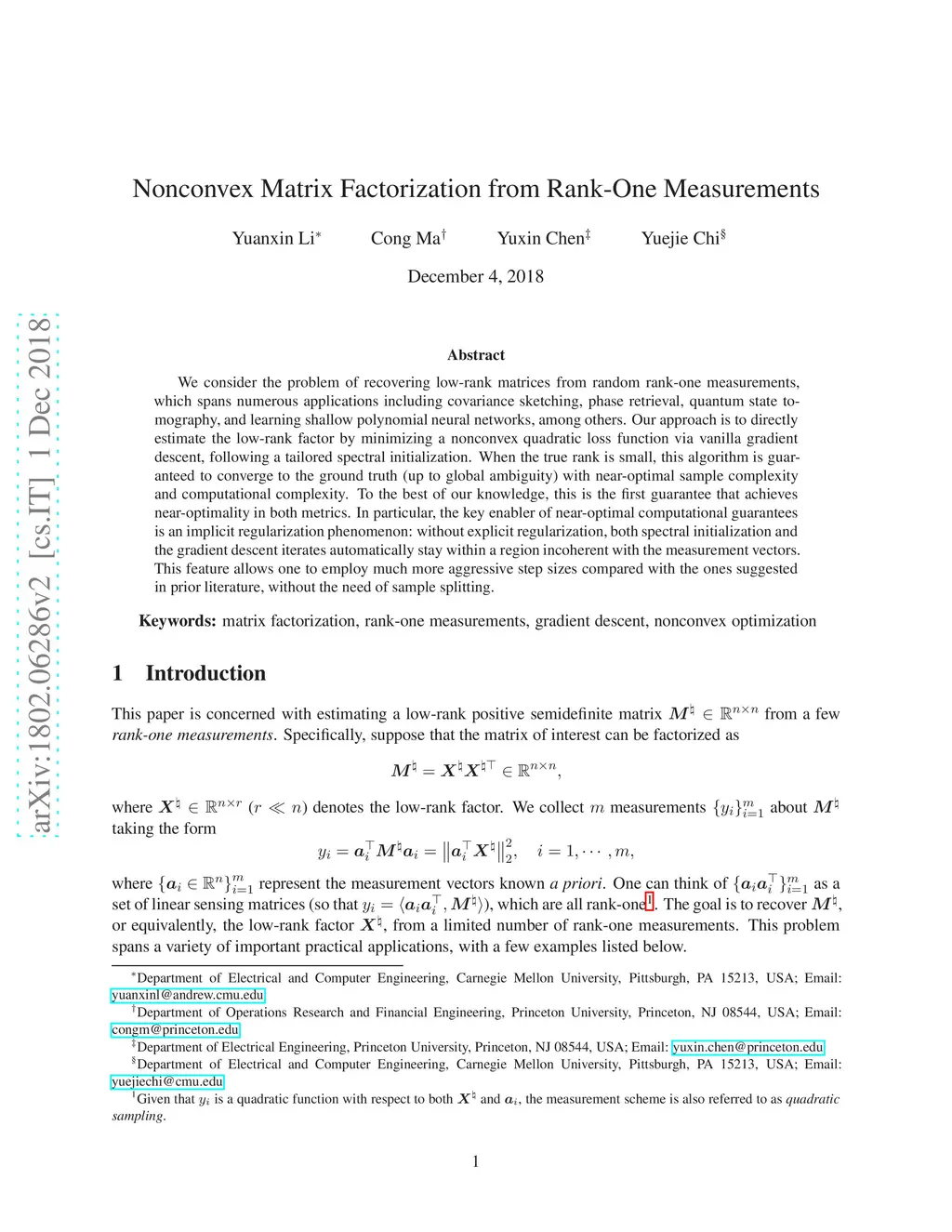 Nonconvex Matrix Factorization from Rank-One Measurements