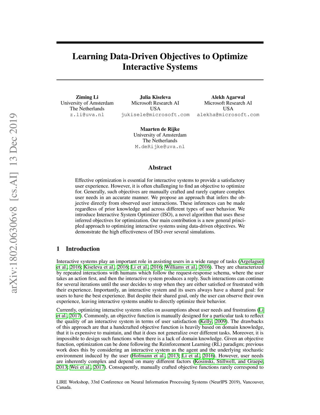 Learning Data-Driven Objectives to Optimize Interactive Systems