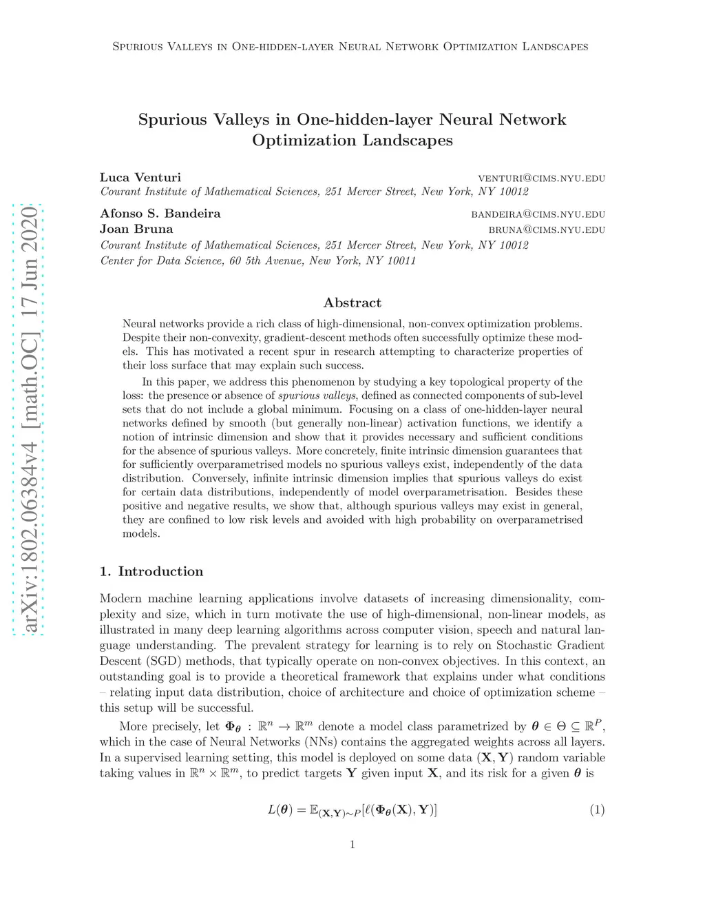 Neural Networks with Finite Intrinsic Dimension have no Spurious Valleys
