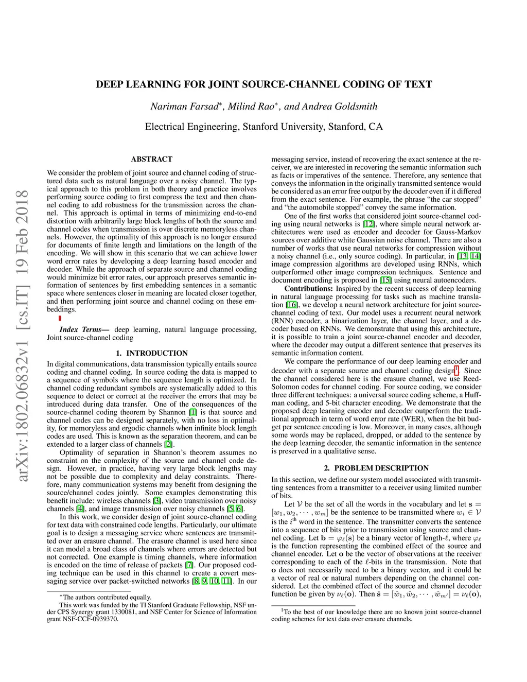 Deep Learning for Joint Source-Channel Coding of Text