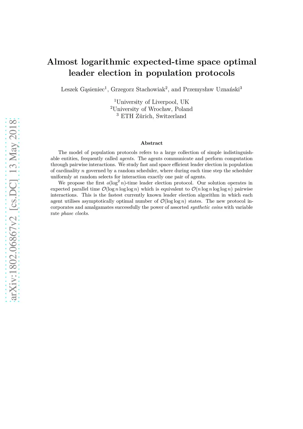The model of population protocols refers to a large collection of simple indistinguishable entities, frequently called {\em agents}. The agents communicate and perform computation through pairwise interactions. We study fast and space efficient leader election in population of cardinality governed by a random scheduler, where during each time step the scheduler uniformly at random selects for interaction exactly one pair of agents. We propose the first -time leader election protocol. Our solution operates in expected parallel time which is equivalent to pairwise interactions. This is the fastest currently known leader election algorithm in which each agent utilises asymptotically optimal number of states. The new protocol incorporates and amalgamates successfully the power of assorted {\em synthetic coins} with variable rate {\em phase clocks}.