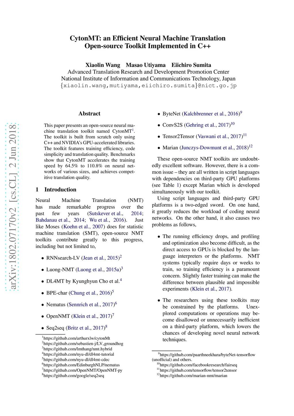 CytonMT: an Efficient Neural Machine Translation Open-source Toolkit