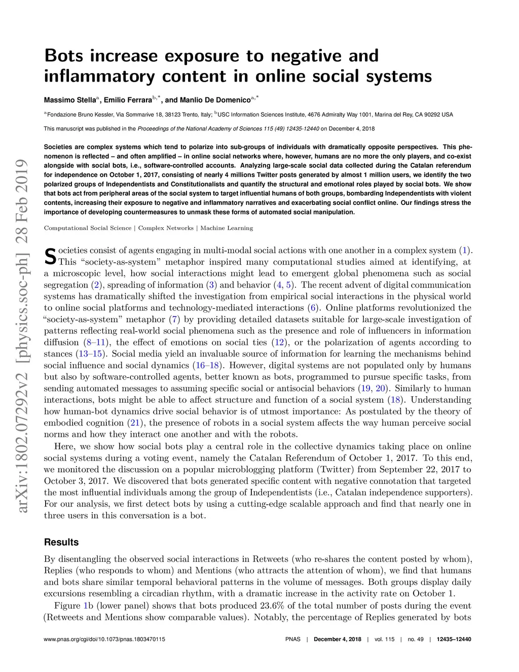 Bots increase exposure to negative and inflammatory content in online