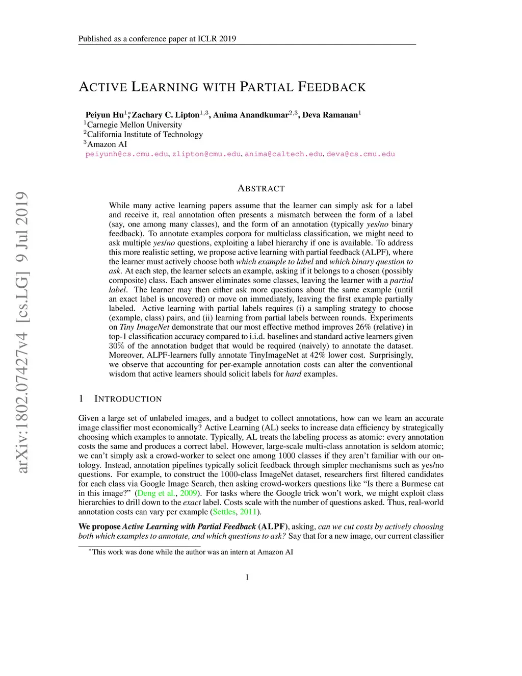 Active Learning with Partial Feedback