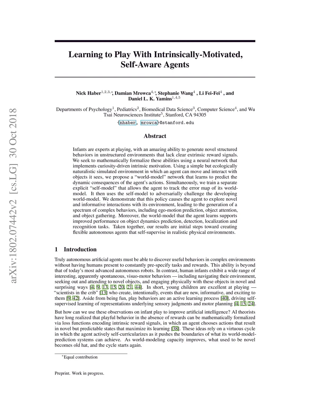 Learning to Play with Intrinsically-Motivated Self-Aware Agents