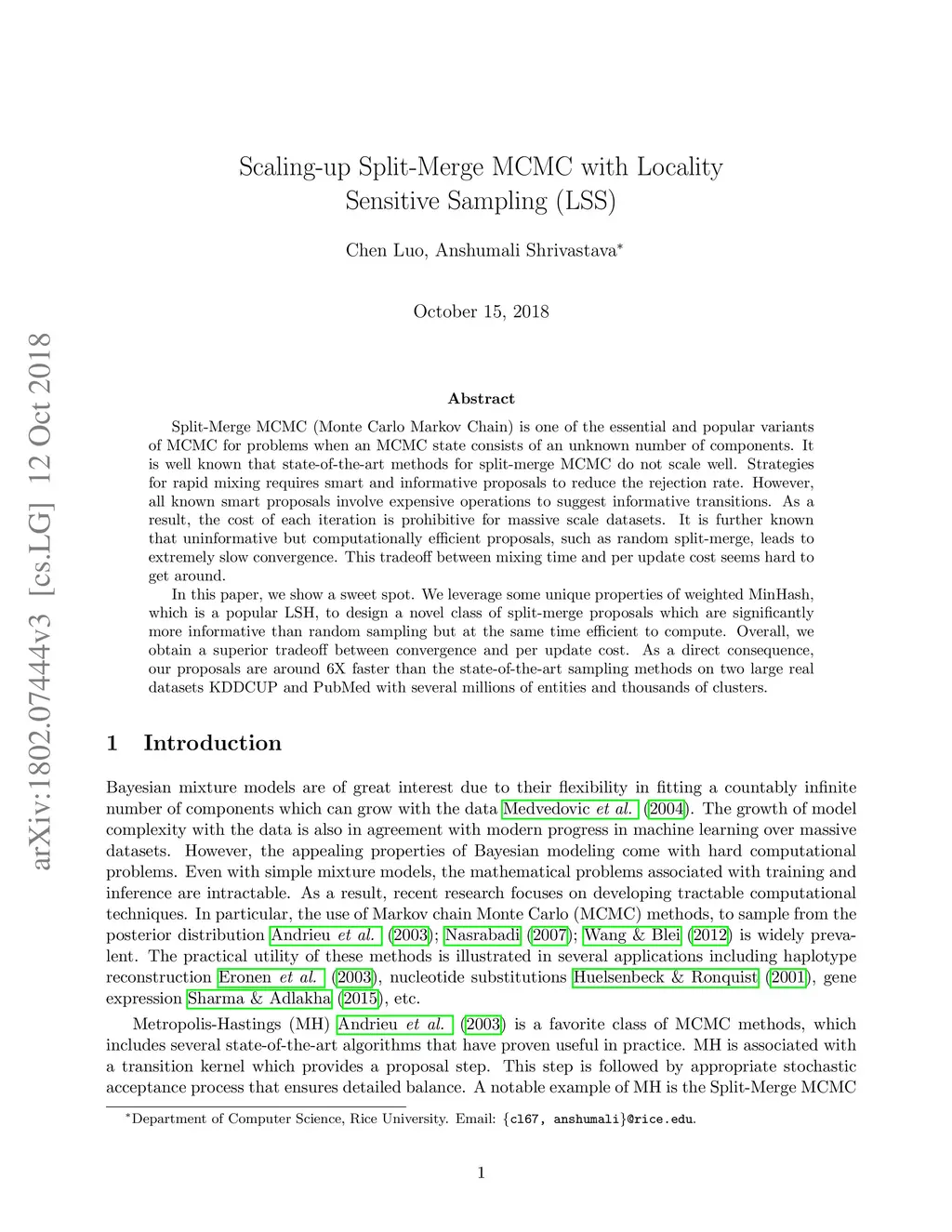 Scaling-up Split-Merge MCMC with Locality Sensitive Sampling (LSS)