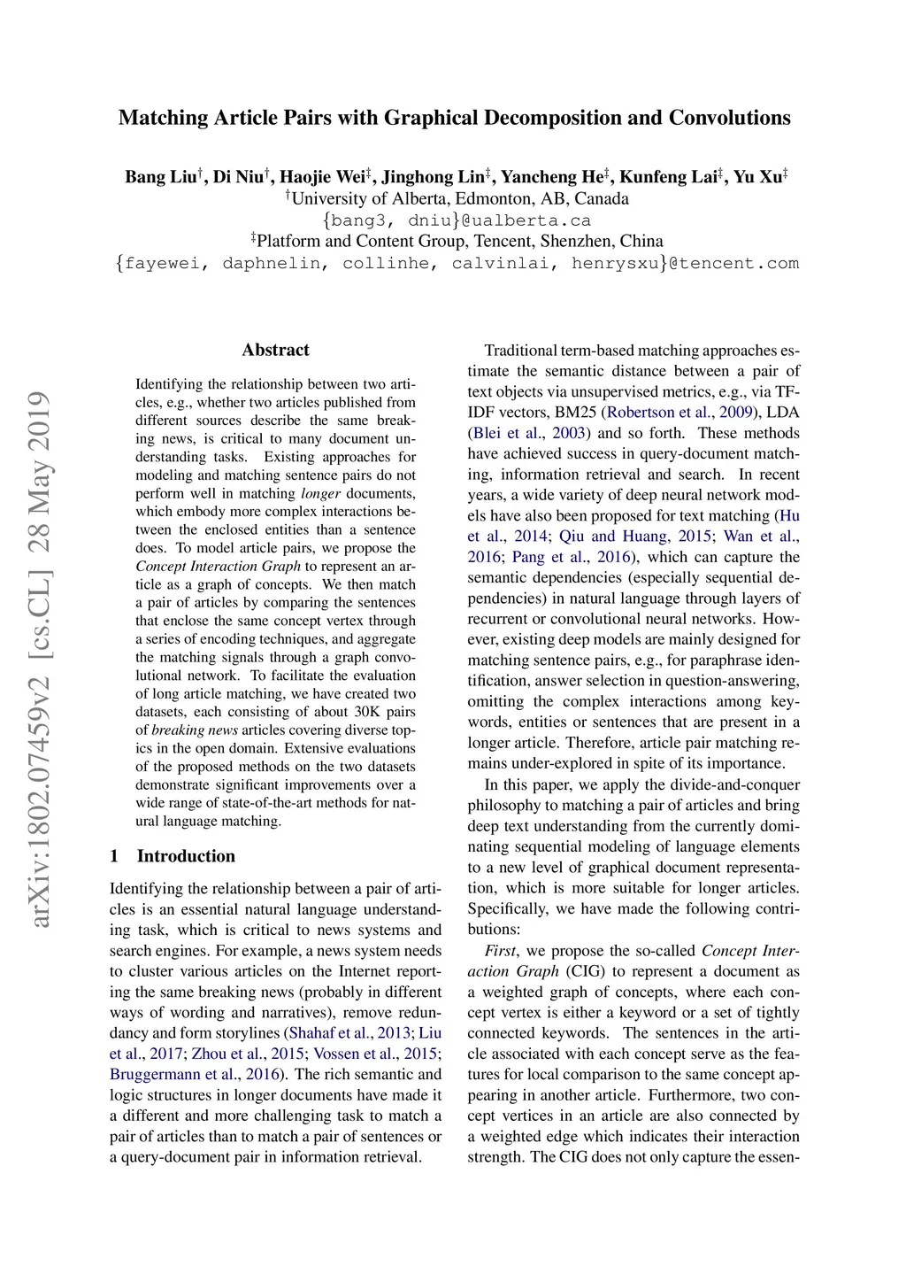 Matching Article Pairs with Graphical Decomposition and Convolutions