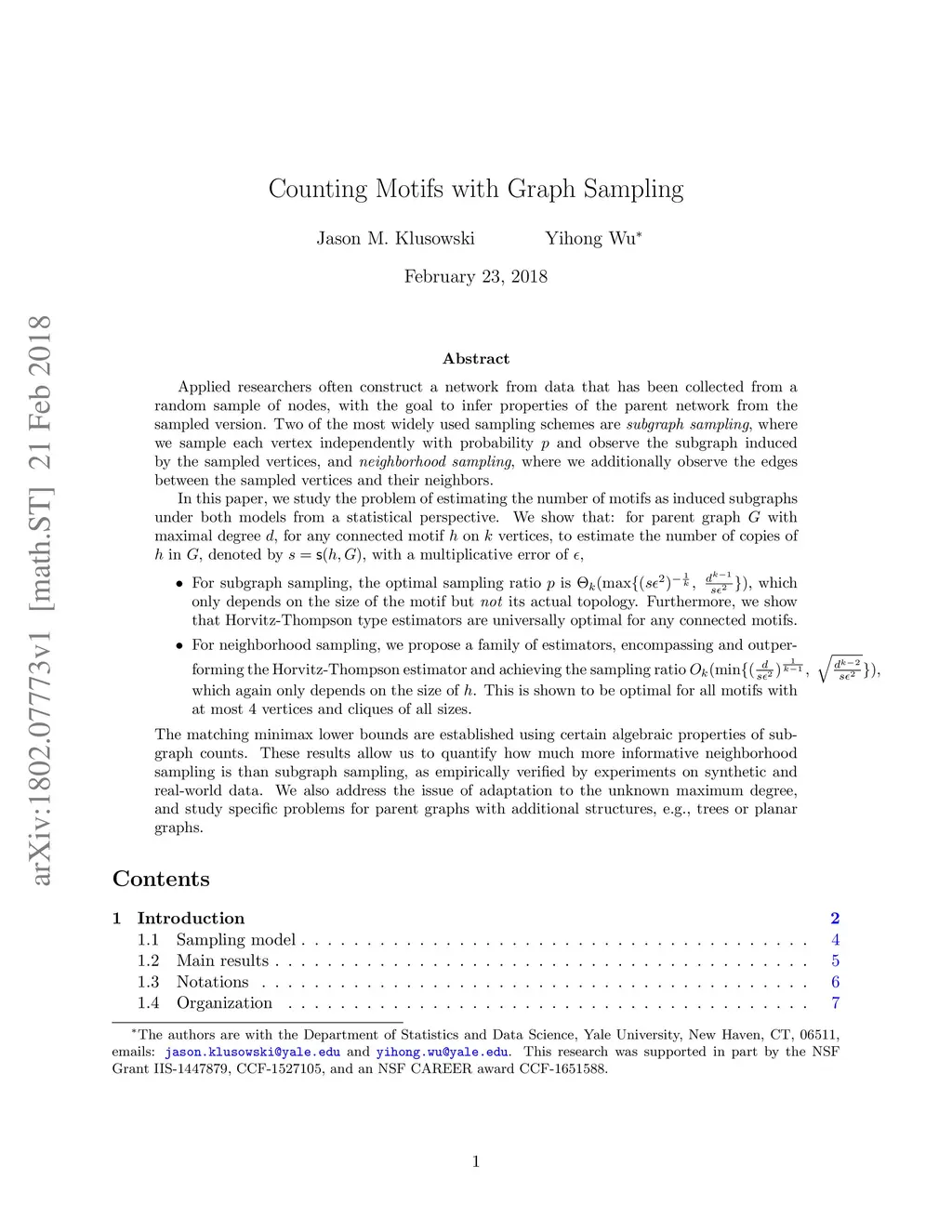 Applied researchers often construct a network from a random sample of nodes in order to infer properties of the parent network. Two of the most widely used sampling schemes are subgraph sampling, where we sample each vertex independently with probability and observe the subgraph induced by the sampled vertices, and neighborhood sampling, where we additionally observe the edges between the sampled vertices and their neighbors. In this paper, we study the problem of estimating the number of motifs as induced subgraphs under both models from a statistical perspective. We show that: for any connected on vertices, to estimate , the number of copies of in the parent graph of maximum degree , with a multiplicative error of , (a) For subgraph sampling, the optimal sampling ratio is , achieved by Horvitz-Thompson type of estimators. (b) For neighborhood sampling, we propose a family of estimators, encompassing and outperforming the Horvitz-Thompson estimator and achieving the sampling ratio . This is shown to be optimal for all motifs with at most vertices and cliques of all sizes. The matching minimax lower bounds are established using certain algebraic properties of subgraph counts. These results quantify how much more informative neighborhood sampling is than subgraph sampling, as empirically verified by experiments on both synthetic and real-world data. We also address the issue of adaptation to the unknown maximum degree, and study specific problems for parent graphs with additional structures, e.g., trees or planar graphs.