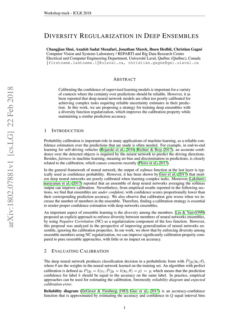 Calibrating the confidence of supervised learning models is important for a variety of contexts where the certainty over predictions should be reliable. However, it has been reported that deep neural network models are often too poorly calibrated for achieving complex tasks requiring reliable uncertainty estimates in their prediction. In this work, we are proposing a strategy for training deep ensembles with a diversity function regularization, which improves the calibration property while maintaining a similar prediction accuracy.