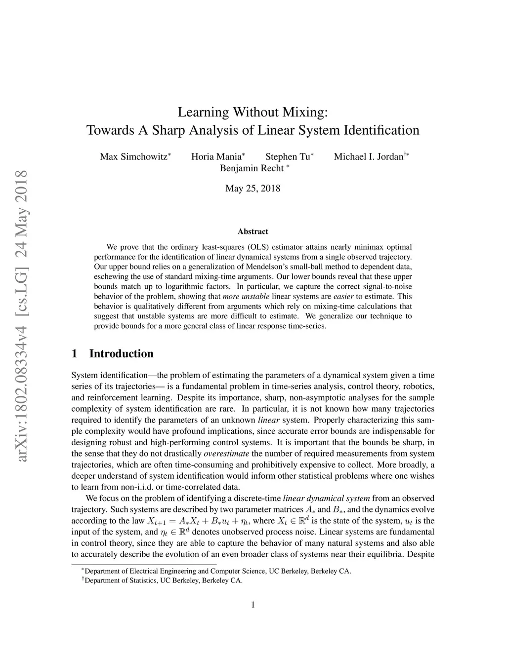 Learning Without Mixing: Towards A Sharp Analysis of Linear System