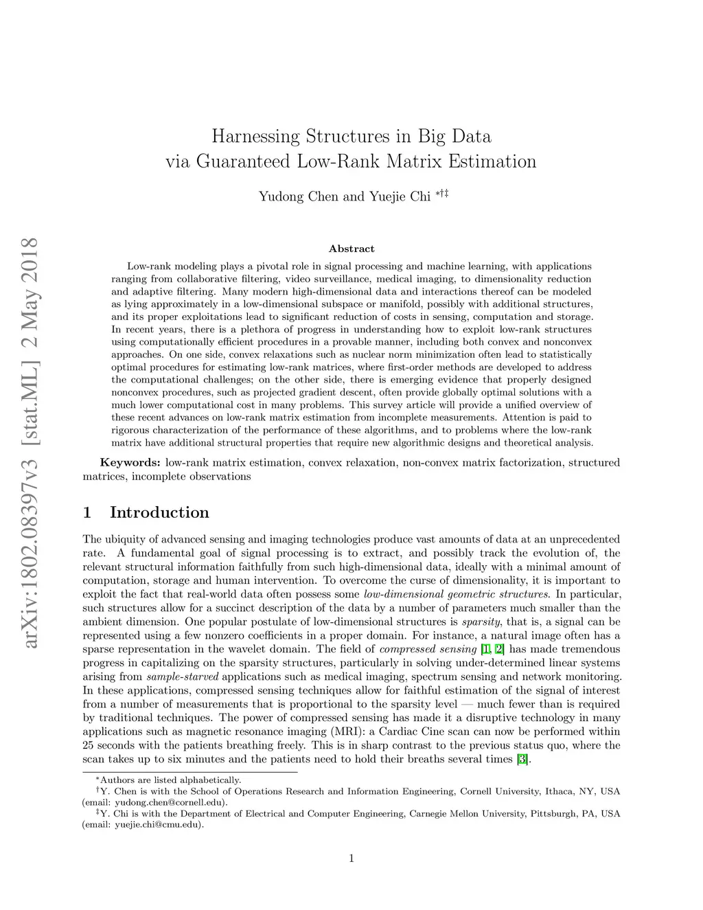 Harnessing Structures in Big Data via Guaranteed Low-Rank Matrix
