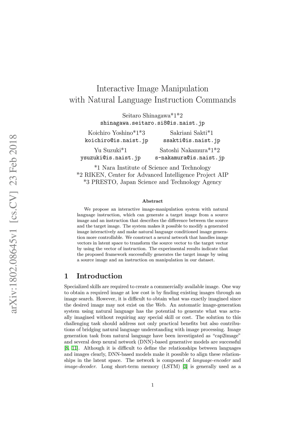 Interactive Image Manipulation with Natural Language Instruction