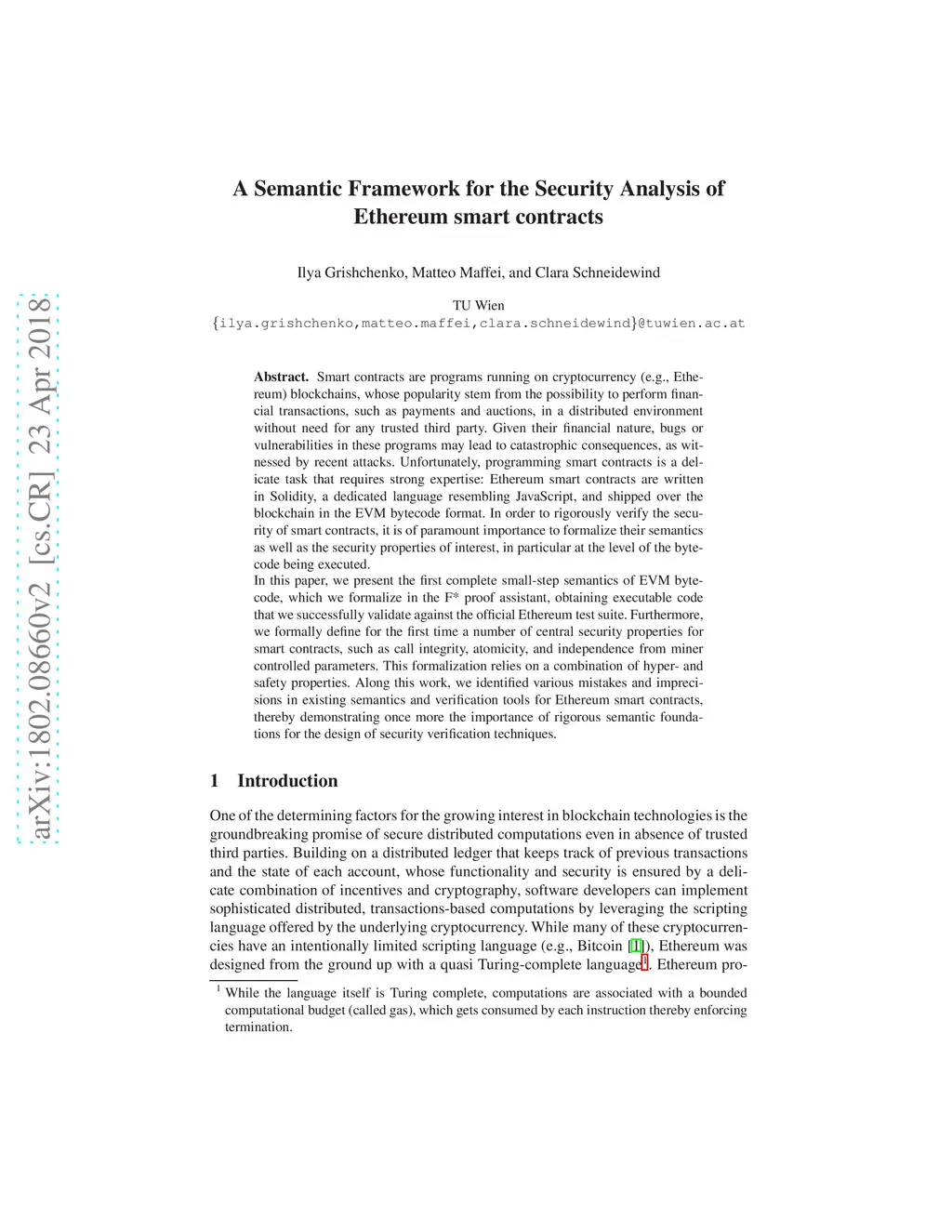A Semantic Framework for the Security Analysis of Ethereum smart