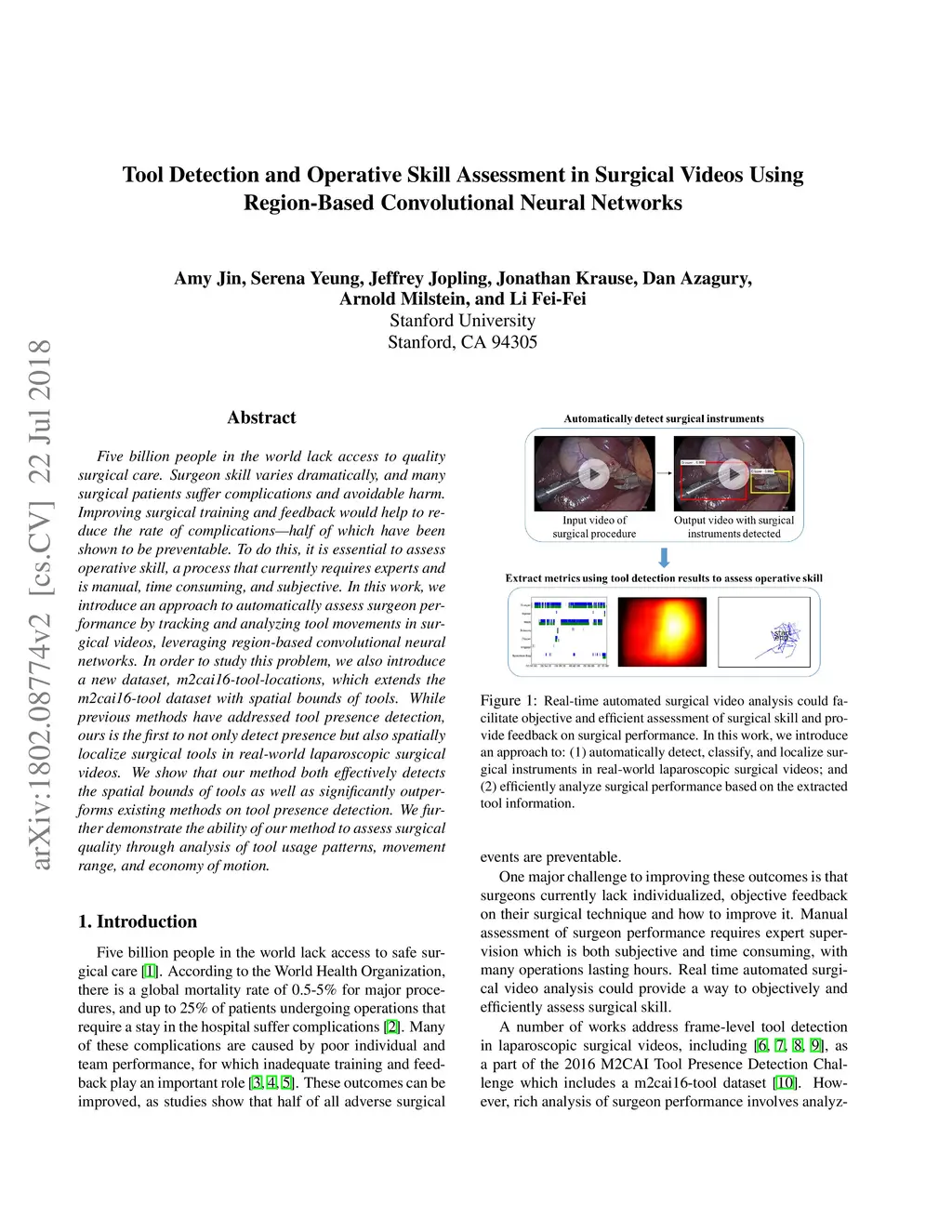 Five billion people in the world lack access to quality surgical care. Surgeon skill varies dramatically, and many surgical patients suffer complications and avoidable harm. Improving surgical training and feedback would help to reduce the rate of complications, half of which have been shown to be preventable. To do this, it is essential to assess operative skill, a process that currently requires experts and is manual, time consuming, and subjective. In this work, we introduce an approach to automatically assess surgeon performance by tracking and analyzing tool movements in surgical videos, leveraging region-based convolutional neural networks. In order to study this problem, we also introduce a new dataset, m2cai16-tool-locations, which extends the m2cai16-tool dataset with spatial bounds of tools. While previous methods have addressed tool presence detection, ours is the first to not only detect presence but also spatially localize surgical tools in real-world laparoscopic surgical videos. We show that our method both effectively detects the spatial bounds of tools as well as significantly outperforms existing methods on tool presence detection. We further demonstrate the ability of our method to assess surgical quality through analysis of tool usage patterns, movement range, and economy of motion.