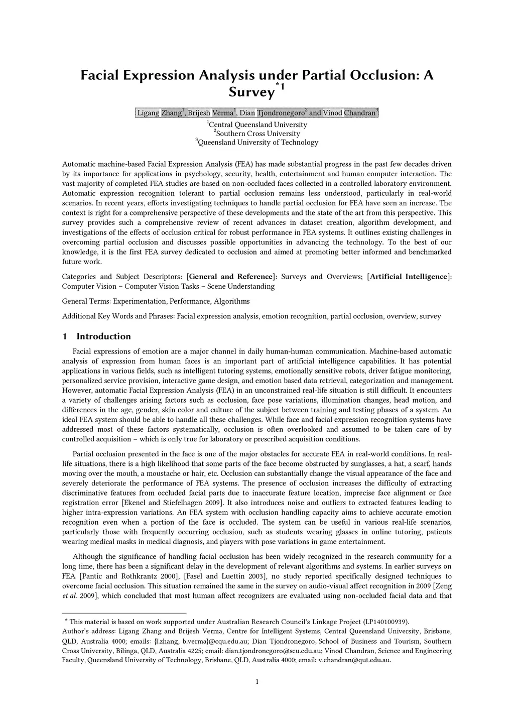 Facial Expression Analysis under Partial Occlusion: A Survey