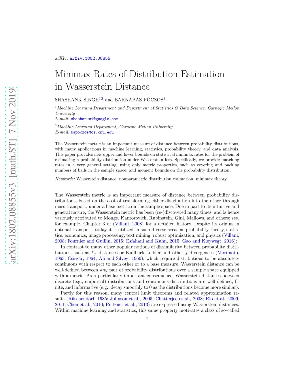 The Wasserstein metric is an important measure of distance between probability distributions, with applications in machine learning, statistics, probability theory, and data analysis. This paper provides upper and lower bounds on statistical minimax rates for the problem of estimating a probability distribution under Wasserstein loss, using only metric properties, such as covering and packing numbers, of the sample space, and weak moment assumptions on the probability distributions.