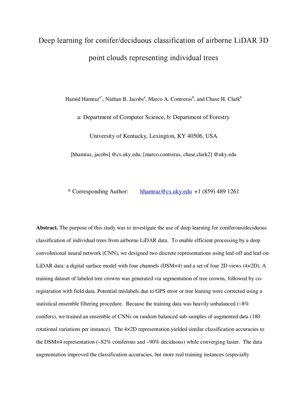 Deep learning for conifer/deciduous classification of airborne LiDAR 3D