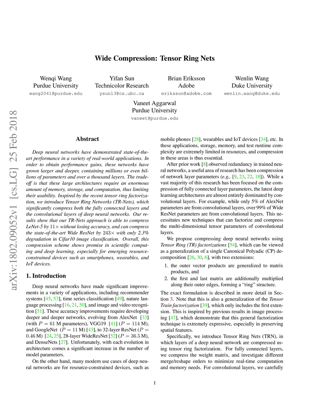 Wide Compression: Tensor Ring Nets