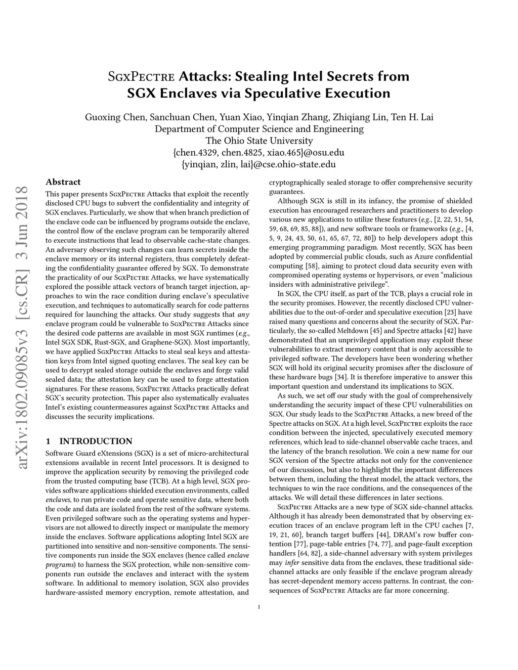 SgxPectre Attacks: Stealing Intel Secrets from SGX Enclaves via