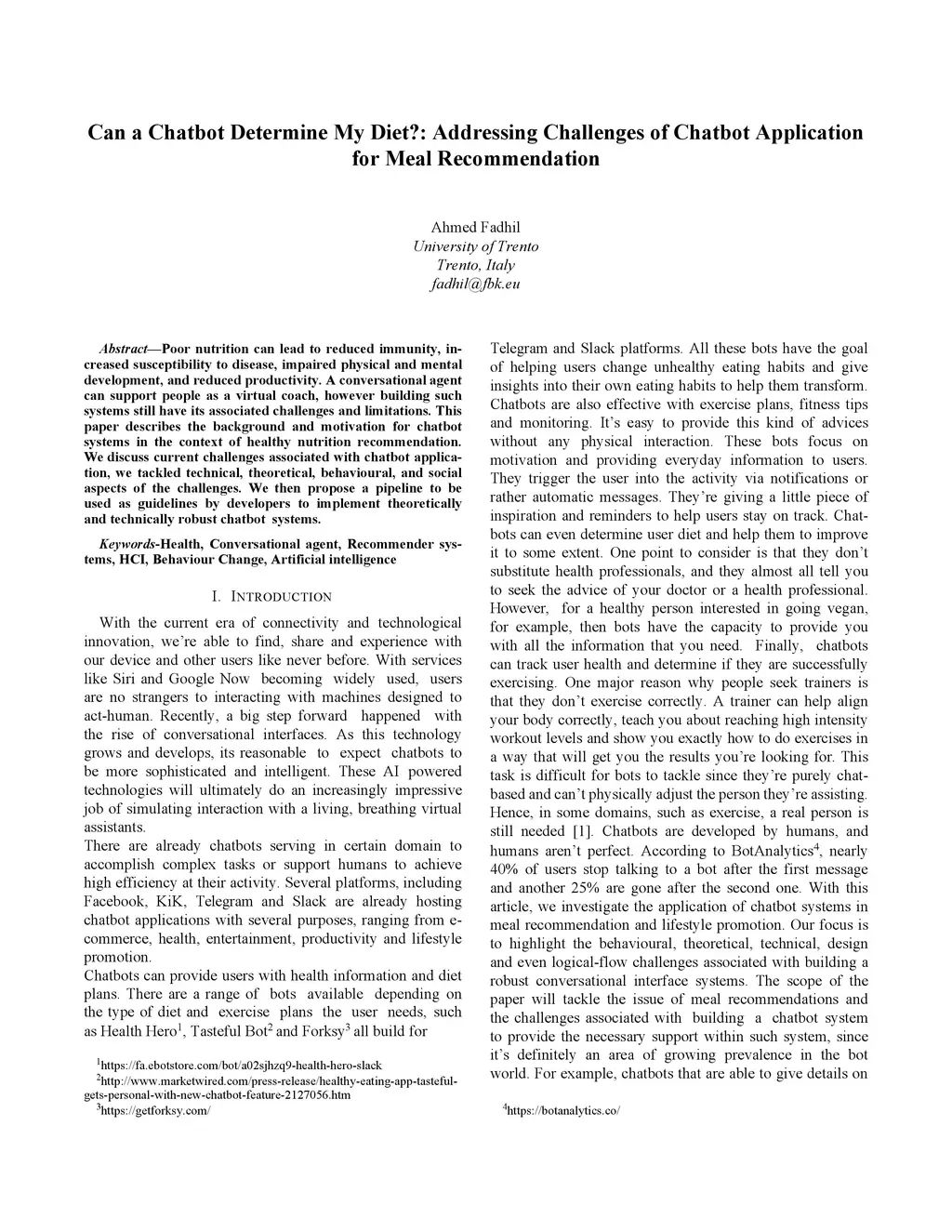 Can a Chatbot Determine My Diet?: Addressing Challenges of Chatbot