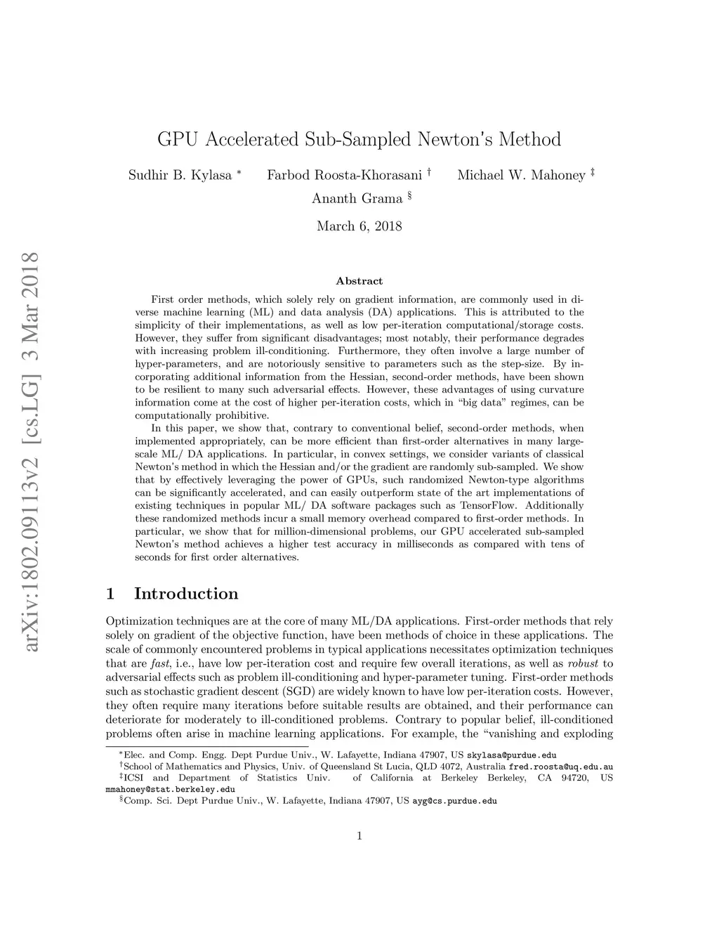 GPU Accelerated Sub-Sampled Newton's Method
